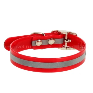 Купить Ошейник из биотана со светоотражающей полосой шир. 20мм, обх. шеи. 30-40см, красный с доставкой